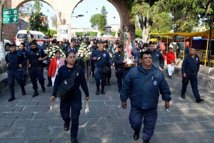 Policías de la Secretaría de Seguridad Pública salieron en peregrinación la mañana de este sábado desde su base: El Cuartel Valladolid para dirigirse hasta el Santuario de Nuestra Señora de Guadalupe, popularmente conocido como el Templo de San Diego, donde le dieron las gracias y le pidieron protección a la Virgen Morena.