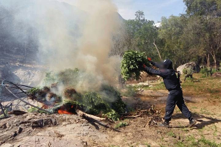 Entre las acciones que los soldados hicieron en el mes antes referido están el aseguramiento de 58 kilos de marihuana en greña y un kilo de dicho enervante empaquetado, así como la eliminación de un secadero.