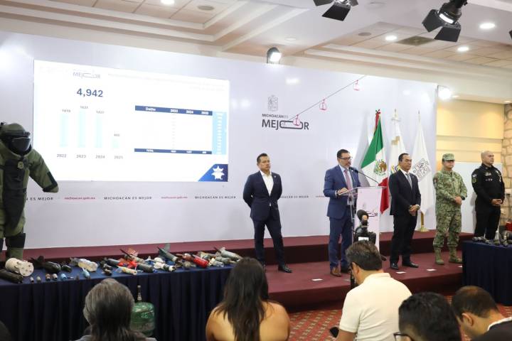 NOTICIAS 08/05/2025Decomisados 523 artefactos explosivos improvisados en el mes de abril: SSP "En el mes de abril se decomisaron un total de 523 artefactos explosivos improvisados en la entidad, producto de las tareas especializadas para localizar este tipo armamento", refirió Juan Carlos Oseguera Cortés, titular de la Secretaría de Seguridad Pública (SSP).