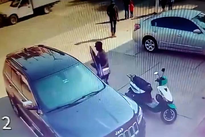 En el video que se difundió a través de redes sociales, se observa como dos sujetos jóvenes con el rostro cubierto y gorra se acercan a una camioneta Jeep de color negro q... Ver más...