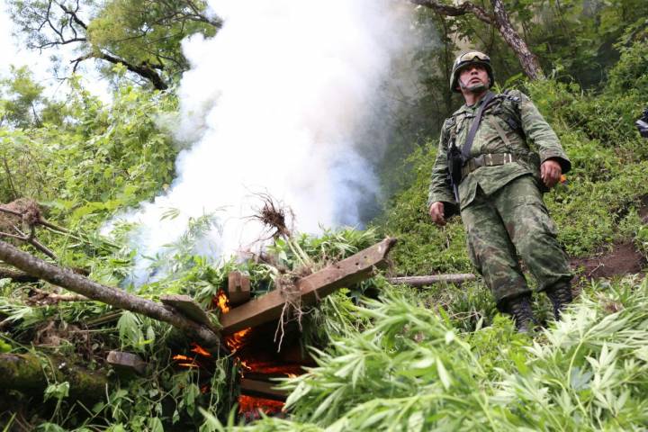 Acciones de inteligencia y vigilancia del territorio nacional, permitieron la identificación de ocho plantÃos de este enervante, a 17 kilómetros al este d... Ver más...