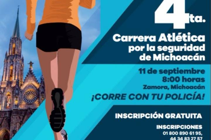 NOTICIAS 03/09/2016Espera SSP dos mil participantes en 4a Carrera Atlética por la Seguridad Con una participación de alrededor de dos mil personas, la Secretaría de Seguridad Pública llevará a cabo en Zamora la cuarta edición de la Carrera Atlética por la Seguridad de Michoacán "Corre con tu Policía".