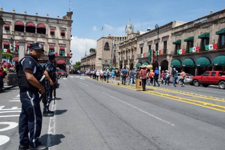 Los elementos de la Policía Michoacán se instalaron en puntos estratégicos para monitorear que el contingente que partió de Ciudad Universitaria a Palacio de Gobierno se realizara sin afectaciones mayores a terceros.