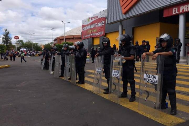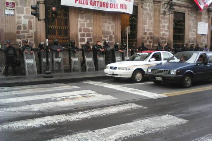 Desde las 8 de la mañana los uniformados instalaron un operativo sobre la avenida Madero, desde el Colegio de San Nicolás hasta el Congreso del Estado.