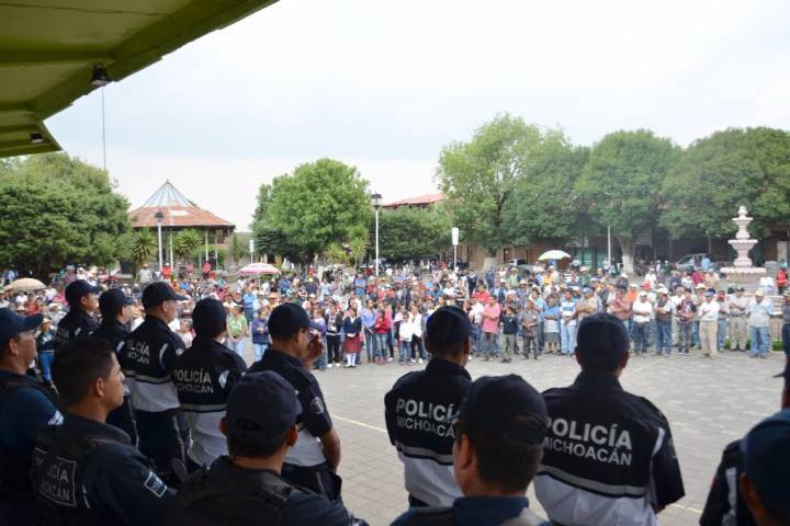 NOTICIAS 24/05/2016SSP, PGJE y habitantes de Nahuatzen instalan cuerpo de seguridad municipalCon 10 habitantes de Nahuatzen, 12 elementos de la PolicÃa Michoacán y cuatro agentes de la ProcuradurÃa General de Justicia del Estado (PGJE), quedó integrado esta tarde el cuerpo de seguridad municipal que brindará vigilancia permanente a ese municipio.