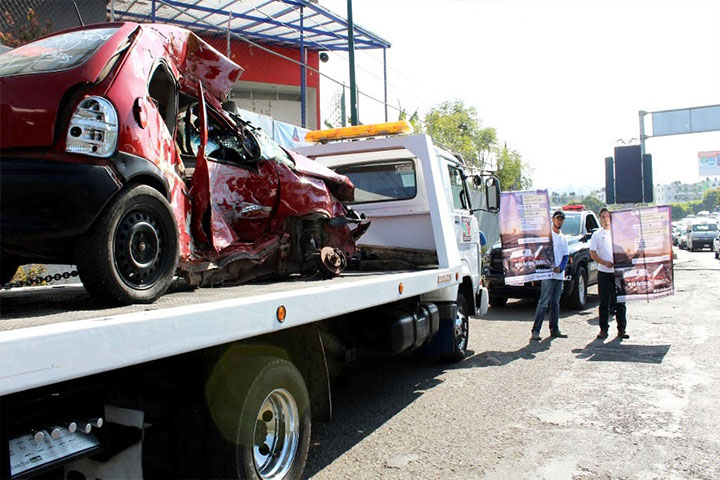 A través de una exposición de vehículos siniestrados y entrega de volantes informativos a conductores en el crucero del Libramiento Norte a la altura de Casa de Gobierno, así co... Ver más...
