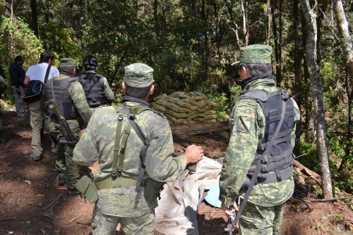 Un total de 42 plantíos de marihuana y tres narcolaboratorios destruidos, así como 15 detenidos, armas, droga y dinero asegurados, es parte de los resultados obtenidos por el Ejército Mexicano en septiembre pasado, en diversos operativos realizados en esta región de Tierra Caliente y en la costa michoacana, donde tiene presencia la 43 Zona Militar.