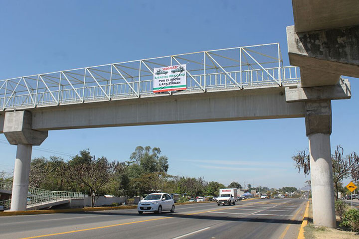 NOTICIAS 21/02/2015Mantas a favor del ejército en ApatzingánLa mañana de este sábado fueron colocadas varias mantas en esta ciudad de Apatzingán, en las cuales se podía leer un texto a favor del Ejército Mexicano, en el que los ciudadanos le agradecían el apoyo brindado en el combate contra el crimen organizado.