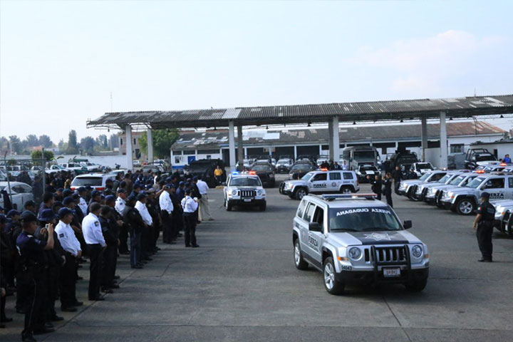 NOTICIAS 21/01/2015Morelia cuenta con 500 policías y nuevo parque vehicularCon el objetivo de reforzar el patrullaje de vigilancia en Morelia, lograr mayor proximidad con la población y atender de forma inmediata sus demandas, el municipio cuenta ya con 500 policías y nuevo parque vehicular, conformado por 30 automóviles y 12 motocicletas, que en una Suma de Voluntades asignó la Secretaría de Seguridad Pública del Estado de Michoacán.