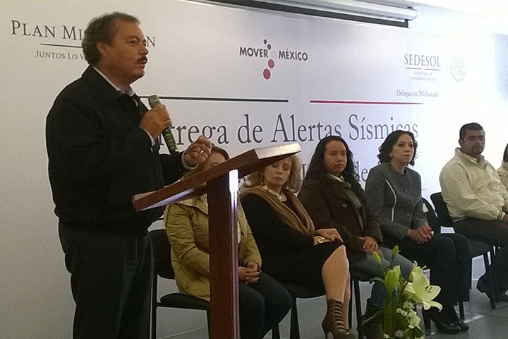 NOTICIAS 28/11/2014Entregan alarmas sÃsmicasSe entregaron 192 alarmas sÃsmicas al mismo número de estancias infantiles en Michoacán por parte de la delegación de la SecretarÃa de Desarrollo Social (Sedesol), las cuales tienen una inversión de recurso federal de 800 mil pesos y que permitirán alertar hasta 45 minutos antes de un evento telúrico informó el director de Protección Civil estatal, Nicolás Alfaro Carillo.