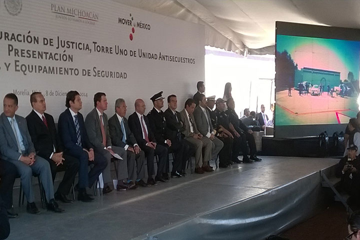 Todo se encuentra listo en las instalaciones de la ProcuradurÃa General de Justicia del Estado de Michoacán para que comience el evento de Modernización del Complejo de la Procuración de Justicia, Torre Uno de Unidad Antisecuestros, Presentación de Uniformes y Equipamiento de Seguridad, presidida por el Comisionado para la Seguridad y Desarrollo Integral de Michoacán Alfredo Castillo Cervantes.