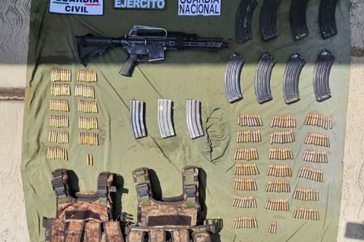El arma de alto poder fue localizada por el personal de la Guardia Civil, del Ejército Mexicano y Guardia Nacional, al realizar patrullajes en la cabecera municipal. El fusil y sus aditamentos corresponde al calibr... Ver más...