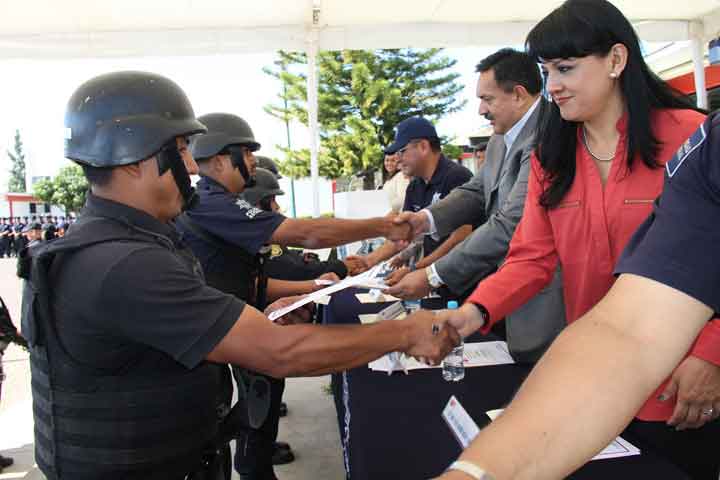 En la contribución para fomentar la vocación de servicio y el sentido de pertenencia, así como a la consolidación de los saberes policiales, la Secretaría de Seguridad Pública recibió 32 nuevos elementos operativos acreditables, mismos que se integran a los 400 policías incorporados a la fuerza de la dependencia gubernamental.