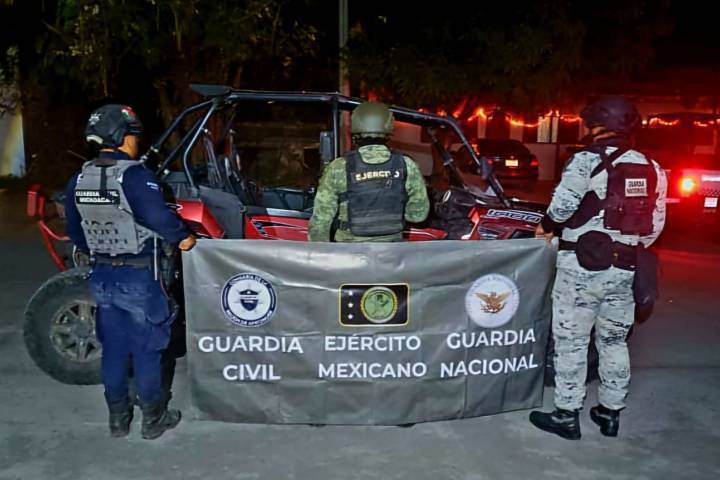 Primeramente, al patrullar en una brecha de terracería de la localidad de Santa Ana Amatlán, oficiales de la Guardia Nacional, Defensa y Guardia Nacional, fue localizado un vehículo Razer con r... Ver más...