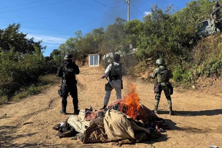Producto de la intensificación operativa realizada en Chinicuila, los elementos de las secretarías de Seguridad Pública (SSP), de la Defensa Nacional (Defensa), y de la Guardia Nacional (GN), localizaron y desmantelaron un campamento clandestino.