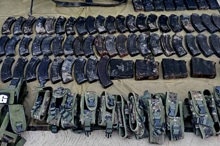 Los uniformados realizaban patrullajes en un camino de terraceria de dicha localidad donde ocultos entre la maleza encontraron 2 fusiles calibre 762 x 39, 2 mil 560 cartuchos, 17 cargadores y equipo táctico.