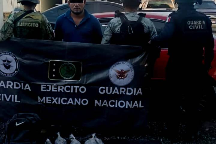 El hecho fue en la población de Cuatro Caminos, en el municipio de Múgica La detención fue después de una intensa persecución, tras lo cual se aseguró droga y más de 12 mil pesos en efectivo, así como un vehículo.