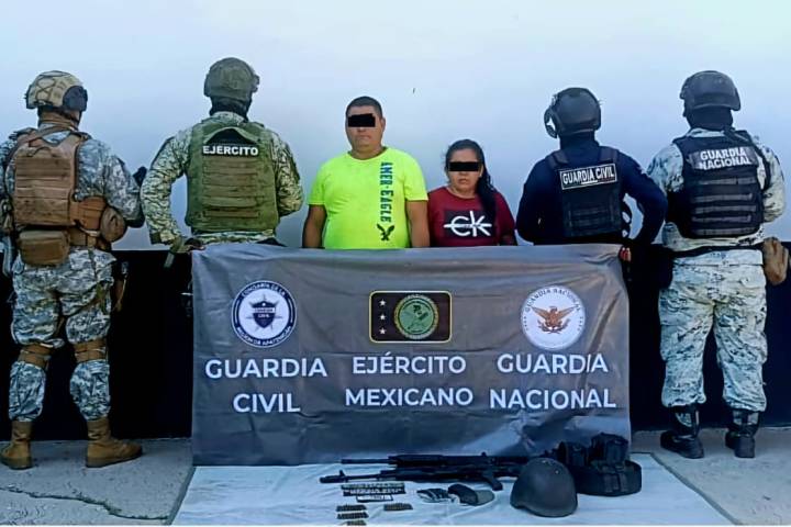 NOTICIAS 06/11/2024Detienen a pareja con armas largas cartuchos y equipo táctico en AcahuatoDerivado del operativo permanente desplegado por autoridades estatales y federales en la tierra caliente michoacana, fue detenida una pareja en posesión de armas largas, cartuchos y equipo táctico.