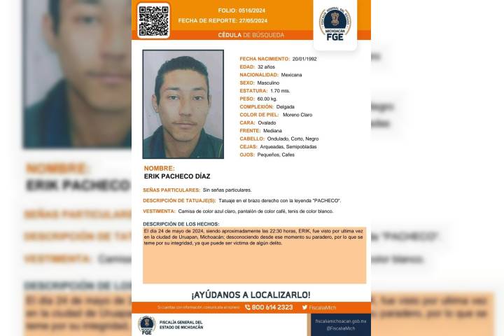 NOTICIAS 05/06/2024SSP localiza a hombre reportado como desaparecido en Nuevo UrechoAgentes de la Secretaría de Seguridad Pública (SSP) localizaron a un hombre de 32 años de edad reportado como desaparecido en el municipio de Nuevo Urecho.