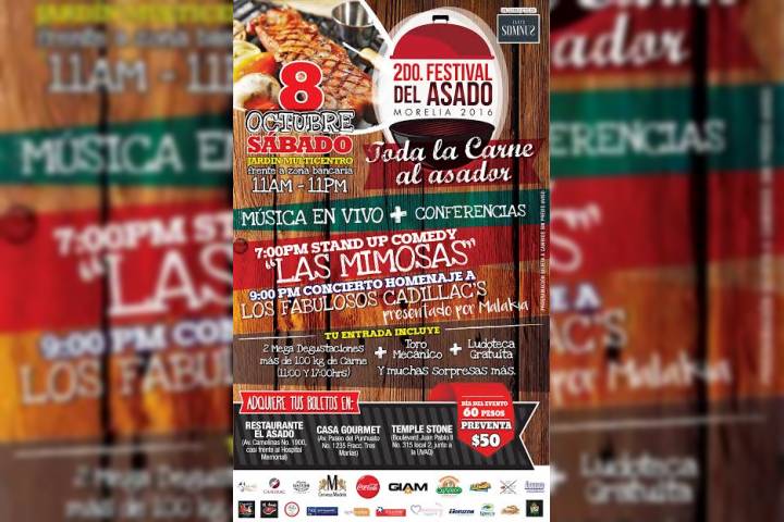 NOTICIAS 08/09/2016Anuncian 2do. Festival del Asado Morelia 2016Con la premisa de lanzar nuevamente "Toda la Carne al Asador" fue presentado por Grupo SomnuS el 2do. Festival del Asado, Morelia 2016, evento que se realizará el próximo sábado 8 de octubre en el Jardín Multicentro de Morelia con la intención de ofrecer al público moreliano un espacio de esparcimiento familiar en el que puedan degustar toda clase de alimentos, siempre y cuando hayan pasado por un asador.