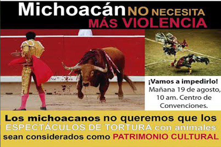 Organizaciones protectoras de animales en Michoacán exhortaron al gobernador sustituto, Salvador Jara Guerrero a utilizar el "veto de bolsillo" y derogar el nombramiento de Patrimonio Cultural Inmaterial del estado a la Tauromaquia y Charrería, así como conseguir un análisis de la declaratoria.