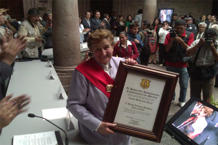 Beatriz Ontiveros Fernández recibió la presea Amalia Solórzano.