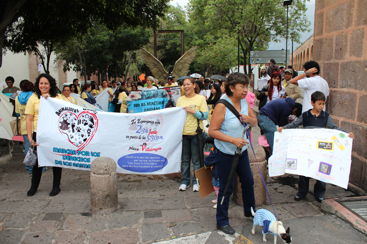 NOTICIAS 23/06/2013Animalistas Unidos marchan por los derechos de sus "amigos peludos"Decenas de morelianos de todas las edades se unieron a las marchas a favor de los derechos de los animales que se realizaron este día en diversas ciudades de México, todo con la intención de levantar la voz y exigir a las autoridades se aprueben las debidas leyes de protección -en los estados donde aún no existen o no se ha aprobado- y así se respete la vida de las especies con las que el "humano" comparte el planeta Tierra.