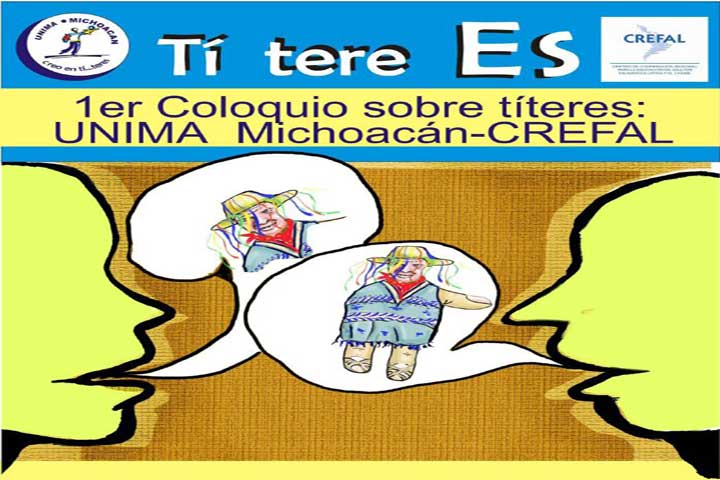 El Centro de Cooperación Regional para la Educación de Adultos en América Latina y el Caribe (CREFAL) invita al Primer Coloquio sobre Títeres "Ti tere Es" que se llevará a cabo en las instalaciones de este organismo y que organizan en conjunto la Unión Internacional de la Marioneta (UNIMA) de Michoacán y la propia institución del 1 al 5 de mayo del presente año con la finalidad de profesionalizar y difundir el arte de las marionetas.