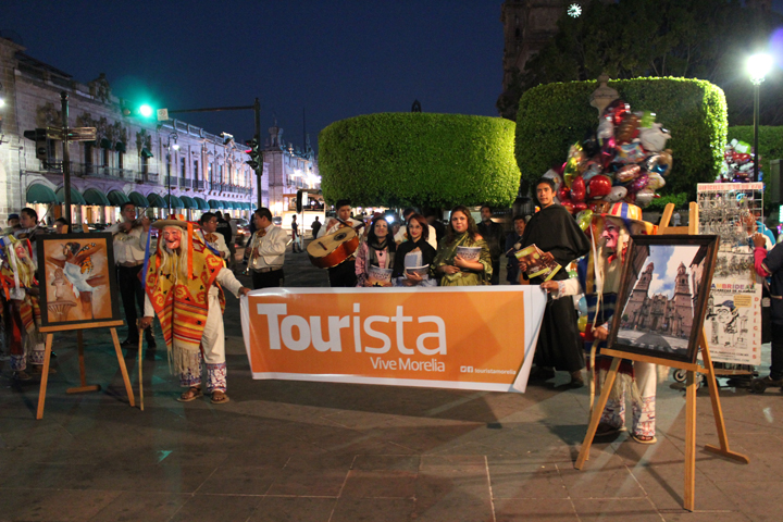 NOTICIAS 03/03/2013Revista Tourista, realiza su primera activación en Plaza de ArmasLa revista Tourista, encabezada por José Luis León y Abelardo Luna tuvo su primer acercamiento oficial con la sociedad moreliana, así como los turistas que se encontraban en pleno corazón del Centro Histórico de la capital michoacana, esto, tras la primer activación en la que se contó con la participación del mariachi México Lindo así como la tradicional Danza de los Viejitos.