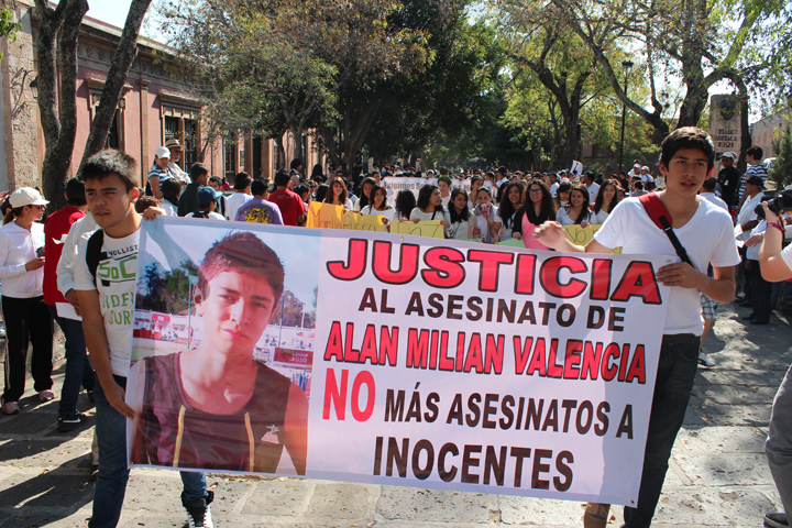 NOTICIAS 09/02/2013Morelianos exigen se ponga un alto a la violenciaConvocados a través de las redes sociales, diversos amigos, compañeros y familiares del joven deportista Alan Milián, asesinado tras haber defendido a su mamá de la delincuencia, se manifestaron para exigir a las autoridades municipales y estatales se esclarezca el caso y no se permita la muerte de más inocentes.