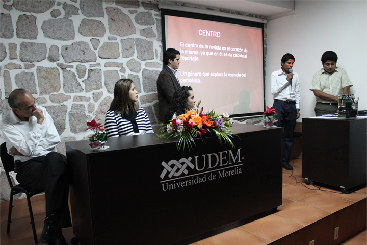 NOTICIAS 07/12/2012UDEM presenta la revista "No cover", proyecto de alumnos de PeriodismoAlentando el talento, ganas y opciones que sus estudiantes impregnan en cada uno de sus trabajos, la Universidad de Morelia realizó la presentación de "No cover, acceso libre a tus ideas", revista efectuada por 12 alumnos del cuarto cuatrimestre de la carrera de Periodismo.