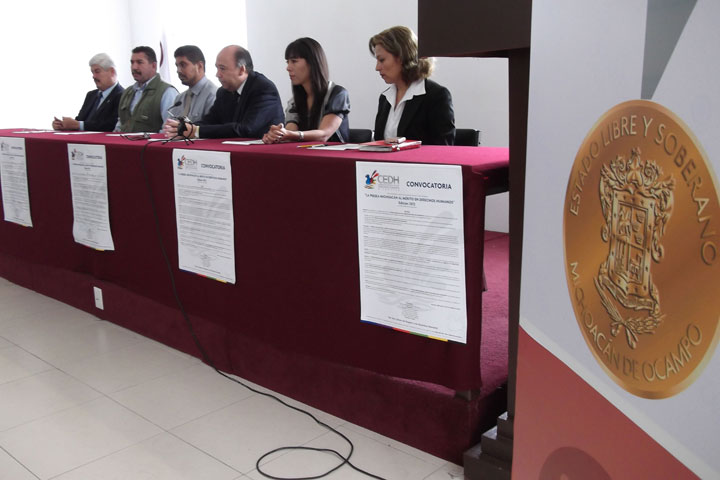 NOTICIAS 05/11/2012CEDH invita a participar por "La Presea Michoacán al Mérito en Derechos Humanos"La Comisión Estatal de los Derechos Humanos en el estado (CEDH), invitó a participar a los interesados en la primera convocatoria "La Presea Michoacán al Mérito en Derechos Humanos" edición 2012, con la finalidad de proponer a quien se distingan por la lucha, respeto, y protección de los mismos, con cierre de dicha invitación hasta el próximo 23 de noviembre.