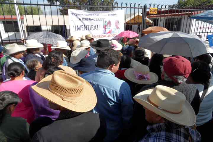 NOTICIAS 16/03/2012Se manifiestan ex braceros en la Secretaría de Gobernación"La deuda histórica con ex braceros no se paga ni con petróleos mexicanos", aseguró la dirigente del Estado de Michoacán de Alianza BRACERO PROA, Alma Delia Fraile Barocio, quien calificó de mentiroso al presidente de la Republica Mexicana, Felipe Calderón Hinojosa tras asegurar que se saldaría la deuda histórica con este sector.