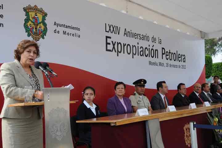NOTICIAS 18/03/2012Apoyo popular para sacar adelante a Michoacán: Consuelo Muro"Para sacar adelante a Michoacán se requiere del apoyo popular", así lo expresó la secretaría de la mujer, Consuelo Muro Urista, quien fue la oradora oficial en el acto conmemorativo del 74 aniversario de la Expropiación petrolera.