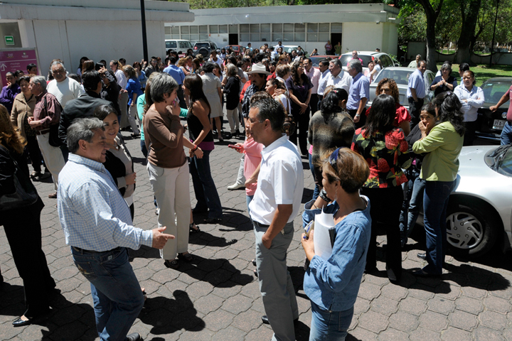 Una vez iniciado el movimiento telúrico, la alarma del recinto estatal se activo, mientras que los empleados salieron en orden, sin correr y con calma de las oficinas en las que s... Ver más...