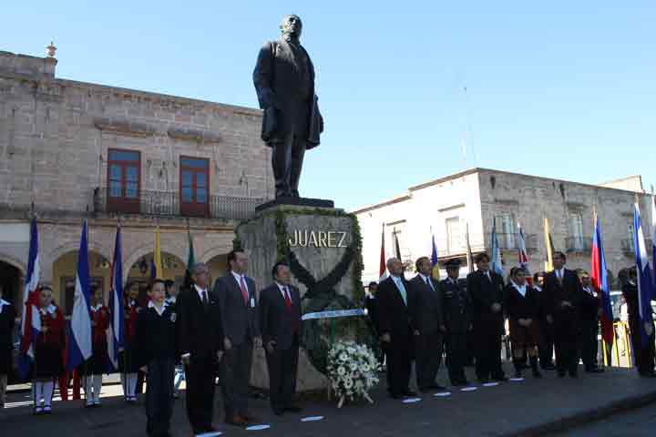 NOTICIAS 21/03/2012Con llamado a defender el estado laico, conmemoran natalicio de Benito JuárezCon un llamado a defender el estado laico, autoridades estatales y del Ayuntamiento de Morelia conmemoraron el CCVI aniversario del natalicio de Benito Juárez.