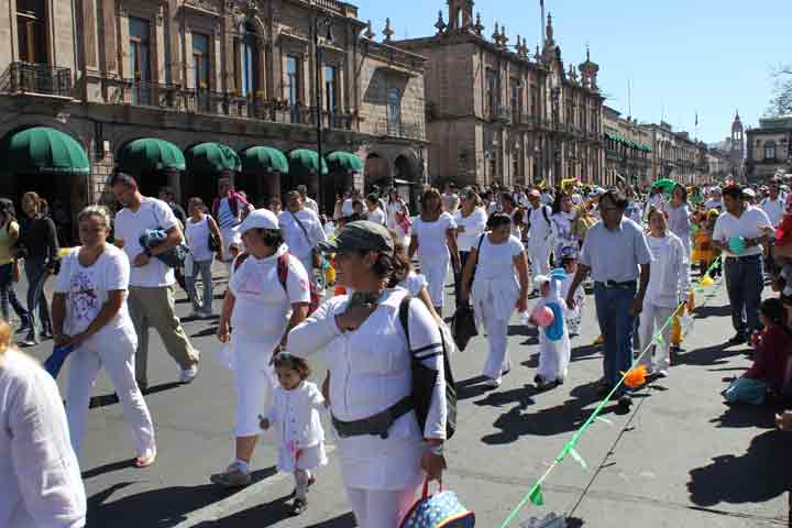 Diversos contingentes partieron alrededor de las 10 de la mañana de la fuente de las tarascas para concluir justo frente a la Catedral. Vestidos con los tradicionales disfraces de la temporada, con gran entusiasmo los menores celebran la llegada de la primavera.
