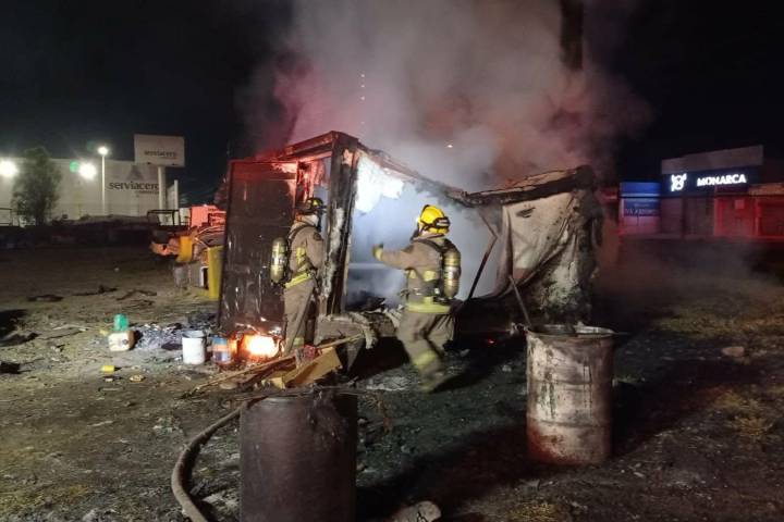 NOTICIAS 22/03/2026Bomberos Morelia sofocan incendio de dos cajas secas usadas como refugio por un vigilante Elementos de Bomberos Morelia combatieron el incendio de dos cajas secas de camioneta que eran utilizadas como refugio por un guardia de seguridad en un predio donde se resguarda maquinaria, el cual se ubica frente a la colonia Los Ángeles, en la zona norte de la ciudad, informaron autoridades policiales y de rescate.