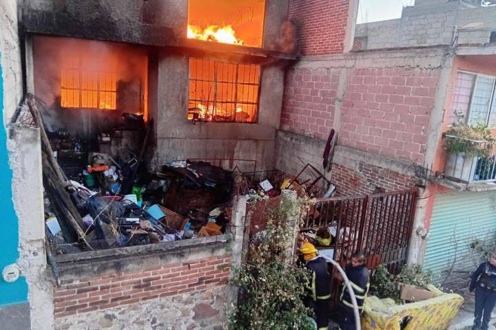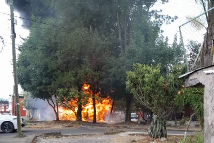 Algunos vecinos de la calle Lirio esquina con Jazmín, se percataron de una enorme columna de humo negro y fuego qué salía de un inmueble, a espaldas del templo, por lo que se inmediato notificaron al número de emergencias.