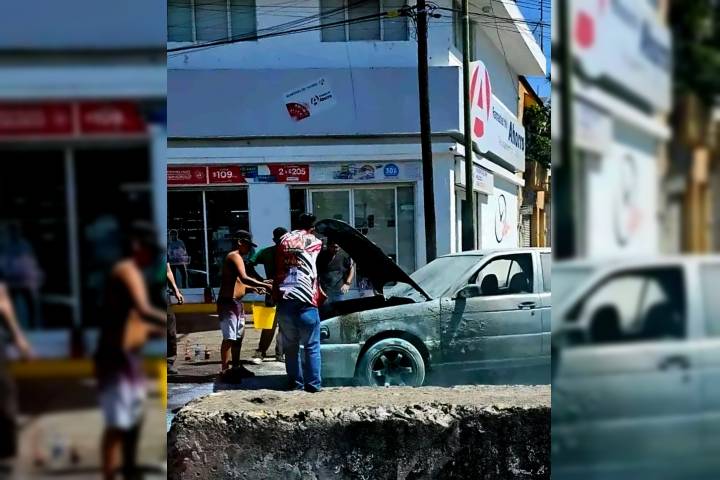 Fue la tarde de este sábado, cuando el conductor de un vehículo Nissan Tsuru observo que debajo del cofre salia fuego y humo, por lo que se detuvo para ponerse a salvo.