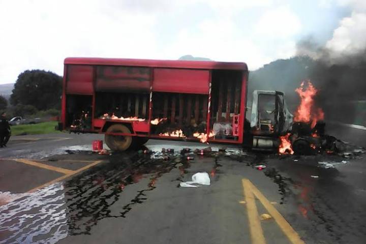 Se conoció que la unidad siniestrada es un camión repartidor de la empresa refresquera Coca Cola, el cual según lo informó la Secretaría de Seguridad Pública (SSP), "estudiantes normalistas quemaron un vehículo, contingencia que fue atendida e... Ver más...