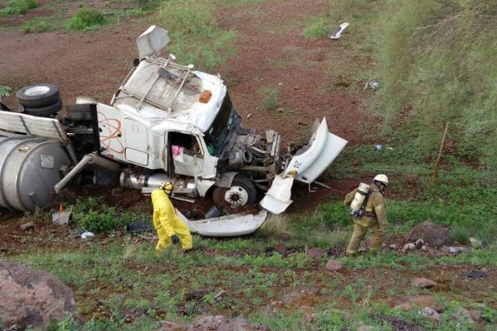 Una pipa que trasladaba 28 mil litros de ácido nítrico se salió de la carretera y volcó, instante en que se registró un leve derrame que a decir de las corporaciones de auxilio no puso en riesgo a la población. El hecho movilizó a los bomberos, los paramédicos y los policías.