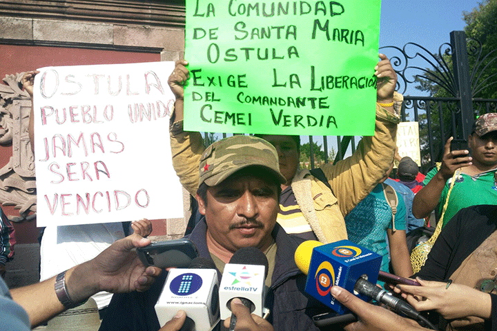 NOTICIAS 02/12/2015Desde Ostula a Casa de Gobierno, exigen libertad de CemeíUn numeroso grupo de manifestantes bloquea de manera pacífica el acceso a Casa de Gobierno de Morelia, para exigir la liberación de Cemeí Verdía Cepeda, comandante de la Policía Comunitaria de Santa María de Ostula, actualmente preso en el penal "David Franco Rodríguez", en la demarcación de Charo, acusado del delito de homicidio calificado.