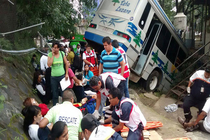 Un total de 25 estudiantes (del Tecnológico de Uruapan y del Cetis 27) resultaron lesionados, cuando el camión de pasajeros en el que se trasladaban, uno de la ruta Tata Lázaro, cayó a un desnivel de aproximadamente 10 metros de altura, donde terminó estrellado contra una vivienda, de acuerdo con la información recabada durante la cobertura periodística.