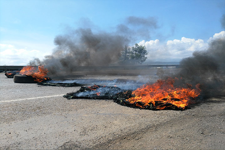 Los manifestantes aseguran que son hasta 4 quincenas las que les ha dejado de pagar la autoridad estatal, por lo que como medida de presión obstaculizaron la circulación de Ventura Puente.