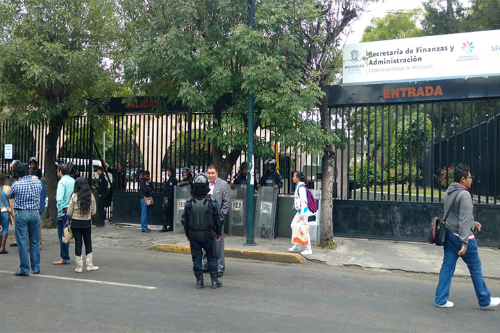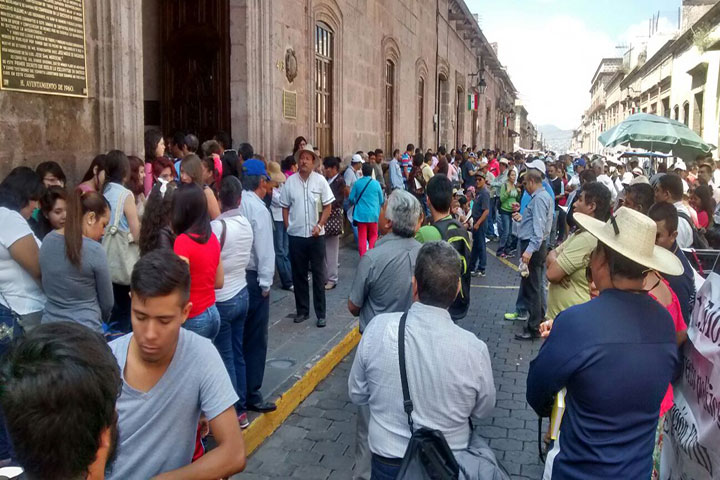 NOTICIAS 01/10/2015CNTE se manifiesta afuera del Ayuntamiento de Morelia Agremiados a la sección XVIII de la Coordinadora Nacional de Trabajadores de la Educación (CNTE) se manifiestan afuera de la sede del ayuntamiento de Morelia, donde han bloqueado la circulación de la calle Allende.