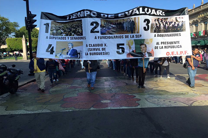 NOTICIAS 02/10/2015Con manifestación, exigen revisión al trabajo de autoridadesPara exigir una evaluación al trabajo que realizan diferentes autoridades, integrantes de la Organización Estatal de Padres de Familia, estudiantes y ex braceros se manifiestan en el primer cuadro de la capital michoacana.