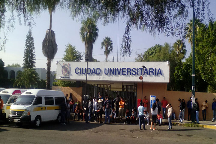 Los manifestantes se reunieron en la puerta principal de Ciudad Universitaria para movilizarse hasta Palacio de Gobierno donde continuarán la con la protesta.