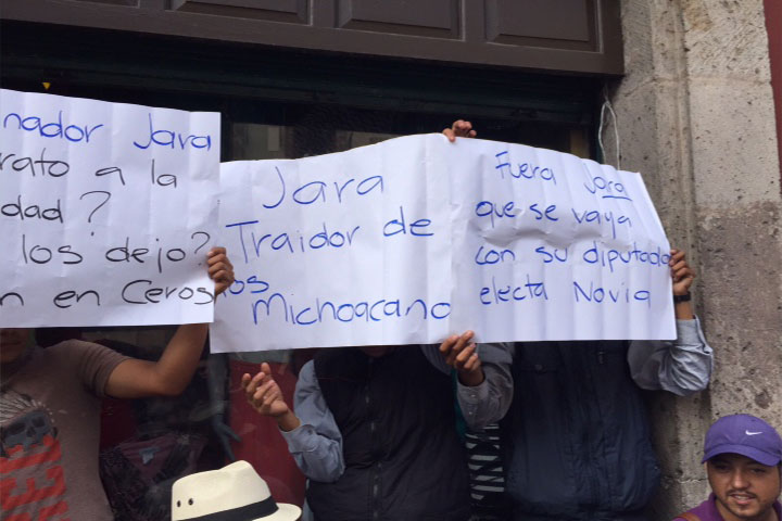 NOTICIAS 31/08/2015Afuera del Congreso, protestan contra Salvador Jara Mientras que al interior del Congreso todo está listo para que inicie el Informe de Gobierno de Salvador Jara Guerrero a las 12 horas, afuera del recinto Legislativo un grupo de manifestantes protestan en contra del mandatario michoacano.