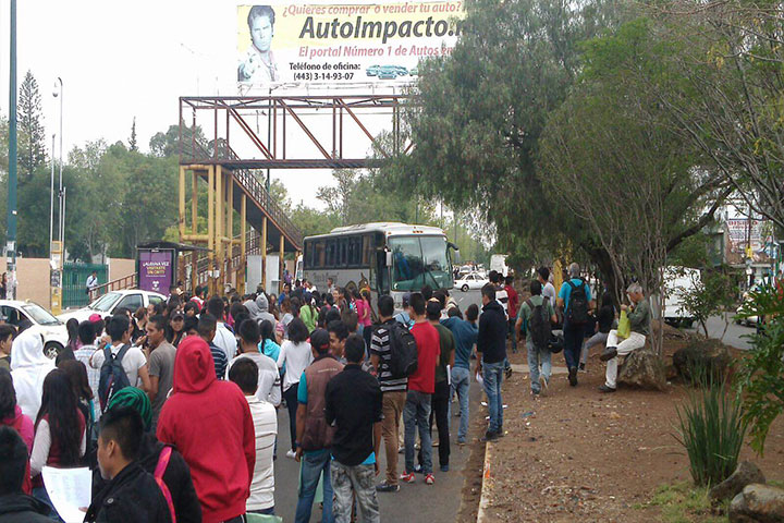 Como parte de las manifestaciones en favor de los estudiantes que fueron rechazados de la Universidad Michoacana, en este momento se encuentran marchando por el Zoológico y van en dirección al centro.